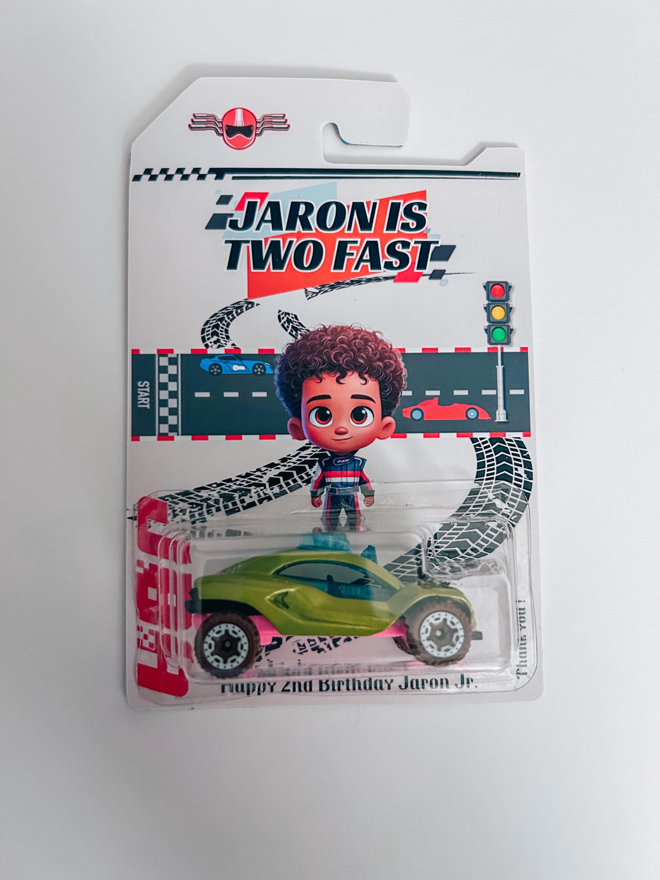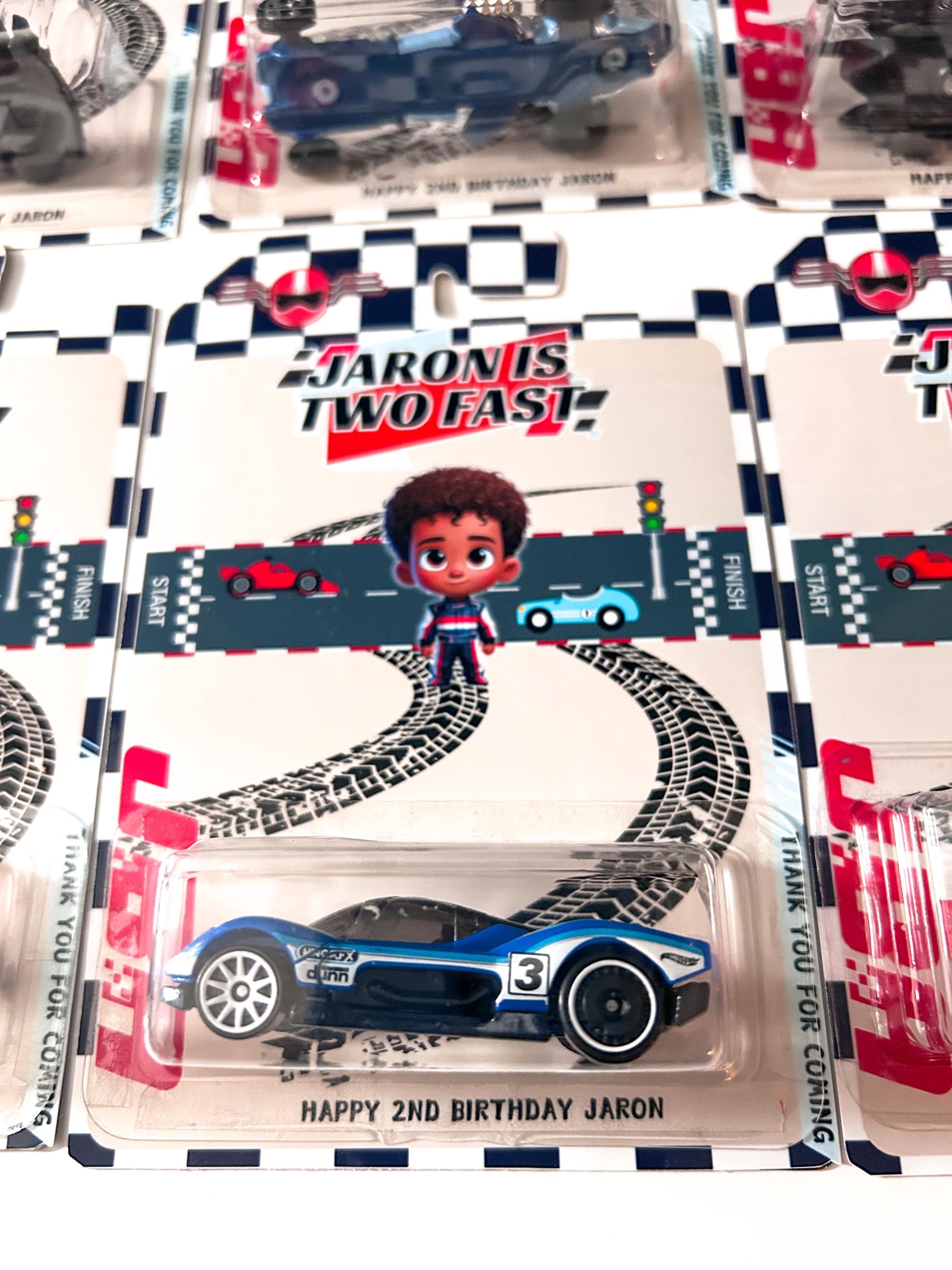 Turn up the fun at your party with our custom Hot Wheels-style packaging – perfect for adding a personalized touch to your party favors! These sleeves fit standard Hot Wheels cars and feature your child’s name, age, and theme colors for a sleek, race-ready look. Great for birthdays, school parties, or car-themed events!