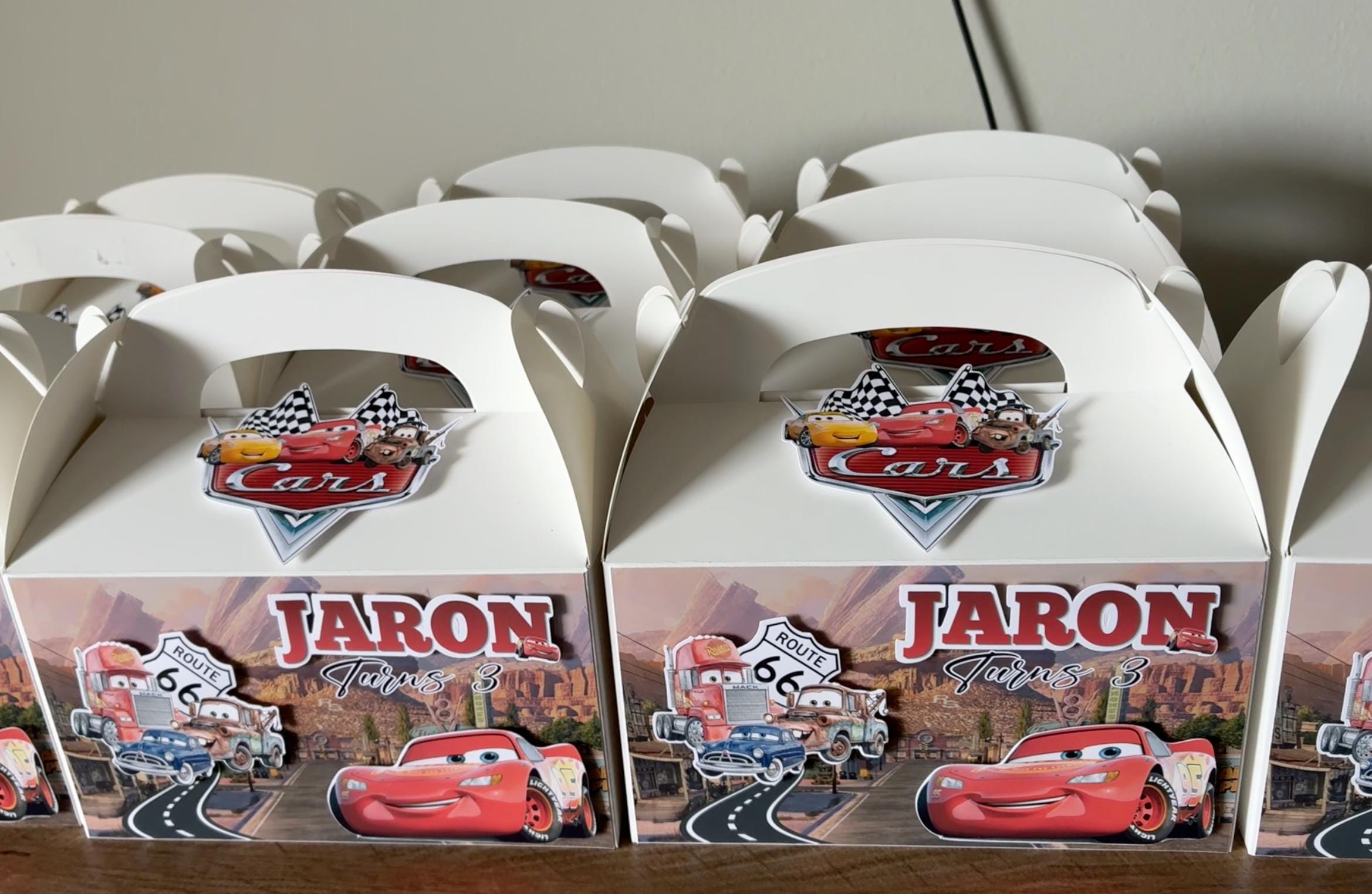 These Custom Disney Cars Treat Boxes are the perfect addition to your little racer’s birthday party. Featuring vibrant colors and inspired by the beloved Cars theme, each box is personalized to make your celebration extra special.